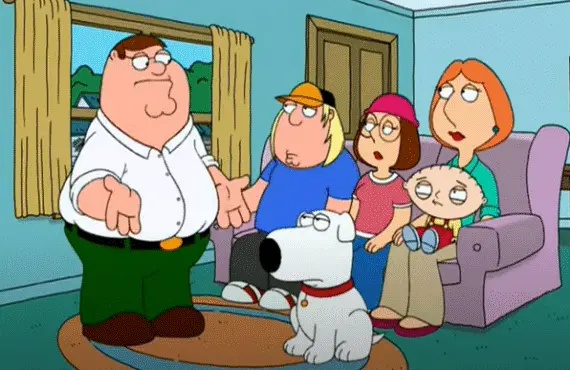 This clip is the opening of that first return episode, entitled "North by North Quahog," in which Peter Griffin announces to the rest of his family that they've been canceled, saying that "Fox has to make room for terrific shows," and then listing 29 other actual Fox shows that were canceled during their hiatus.