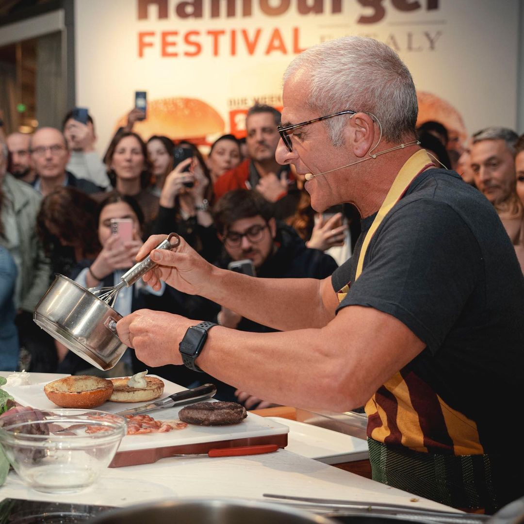 Max Mariola at Hamburger FestivalHe also created videos for Amazon prime where he tells the story of Roman recipes and culinary traditions.